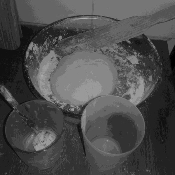 Ne pas hésiter à pétrir avec force et énergie : le pain vous le rendra ! Il faut à la fin que la pâte soit bien lisse, enfin… à peu près lisse.