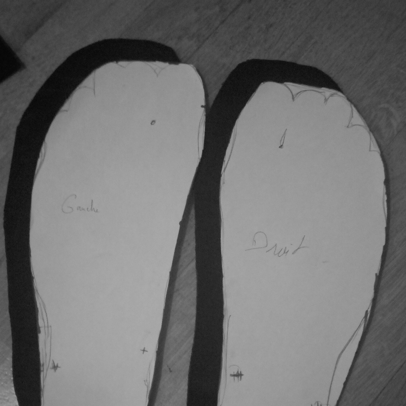 - Les semelles sont découpées et prêtes à être encollées avec le liège.
